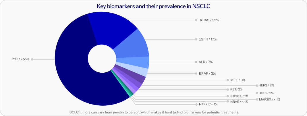 Healthcare providers test for biomarkers, often from a tumor tissue biopsy, to help guide treatment decisions. Pfizer is working to transform lung cancer treatment by researching new ways to approach the disease, such as studying potential treatments that target biomarkers.